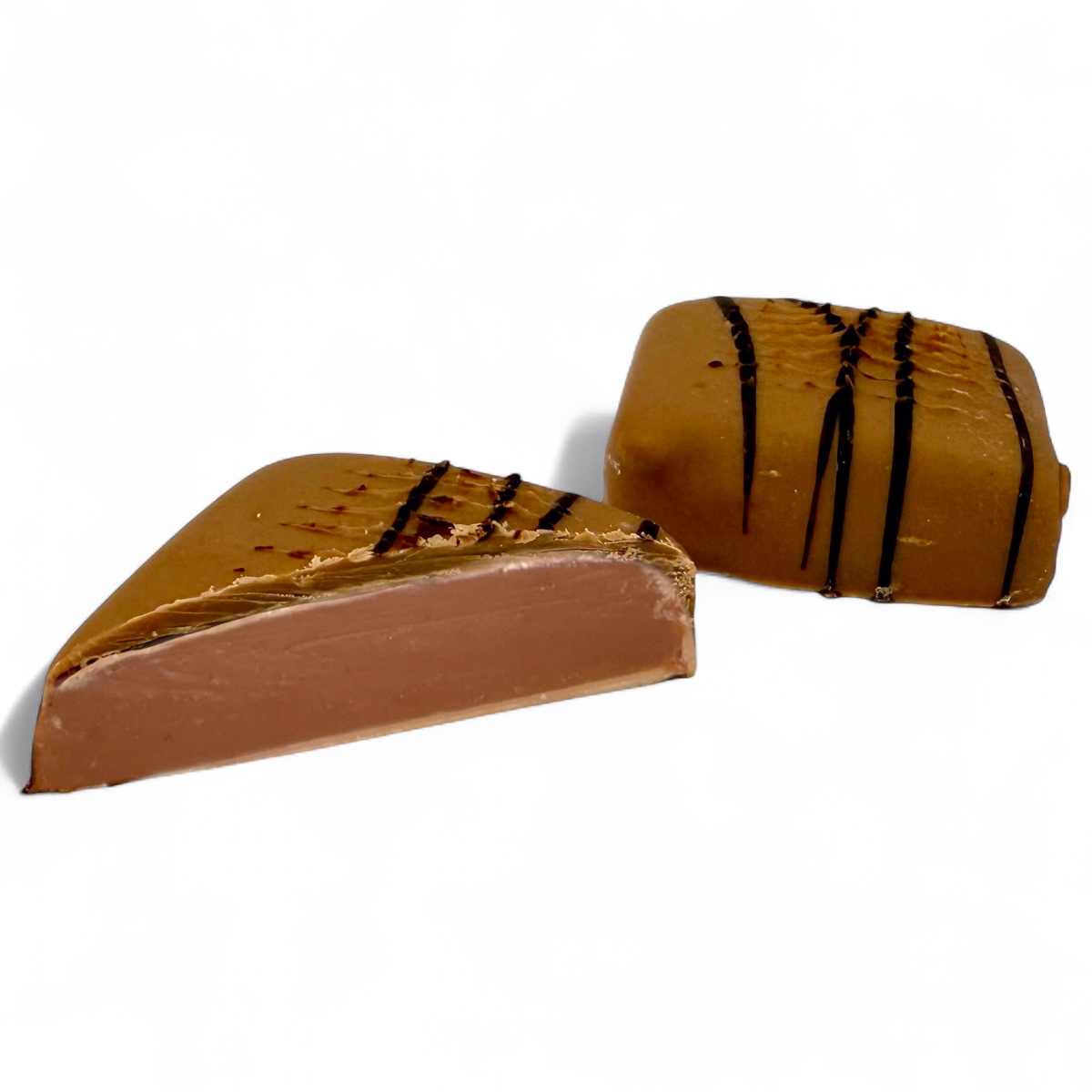 Melk chocolade  geheel gevuld met een stevige romige  karamel vulling.