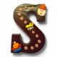 Chocoladeletter van 200 gram, gemaakt van romige melkchocolade met pistachevulling, krokant gebakken knafeh en met honing gekarameliseerde pistachenoten in de letter S. Gemaakt van Fairtrade chocolade.